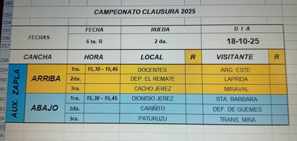 Programa de Partidos Sábado 18 de Octubre