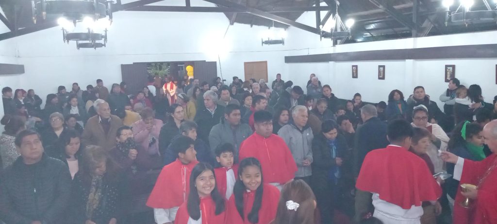 La Capilla atestada de fieles, la misa Central oficiada por el Obispo diocesano Cesar Daniel Fernández, posteriormente los asistentes se trasladaron a los que ellos llaman SUM donde se inicio la Serenata al santo ,Cesar y el Grupo Felicidad el principal animador.
