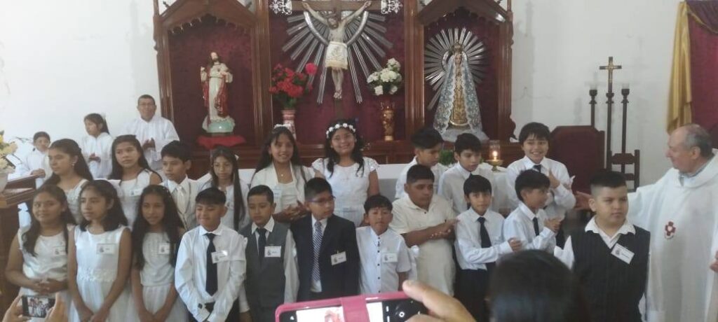 Jornada de Domingo 14 de Diciembre, Misa en la Capilla del Sr y Virgen Del Milagro , oficiada por el Párroco de la Iglesia del Espíritu Santo , donde recibieron la primera Comunión 20 niños y niñas.