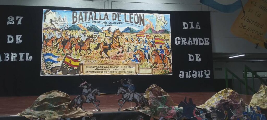 El turno mañana de la escuela de Comercio Gral Belgrano , con un emotivo acto docentes y el alumnado recordaron este 27 de Abril , la Batalla de Leon , hecho histórico fundamental para la conformación de lo que es Jujuy y nuestra República en la actualidad , esta batalla fue un 21 de Abril 1821 , marco el inicio de la retirada de las tropas realistas y la aceptacion de la monarquía española de la perdida de estos lejanos territorios.